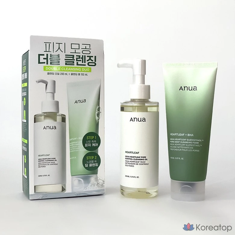 Очищающая пенка для глубокого очищения пор Anua с кверцетинолом 150 мл, Очищающее масло для контроля пор Anua 200 мл, набор для очищения, 1 комплект
