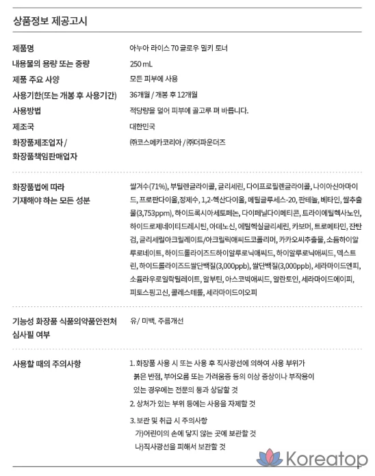 Тоник для лица Anua Rice 70 Glow Milky Toner, 250 мл, 1 шт.