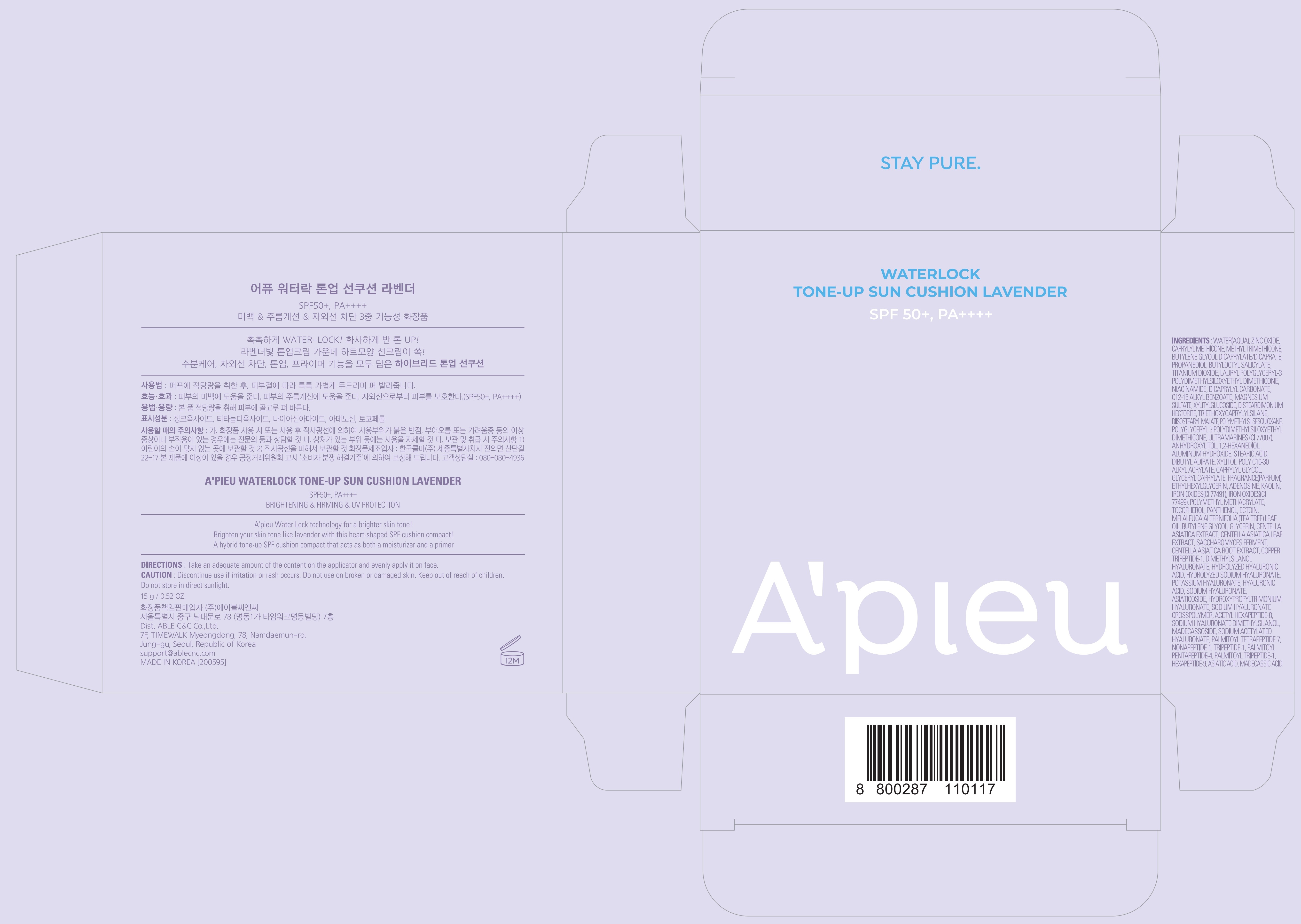 A'Pieu Water Lock Tone-Up Sun Cushion 15 г, лаванда, 1 шт.