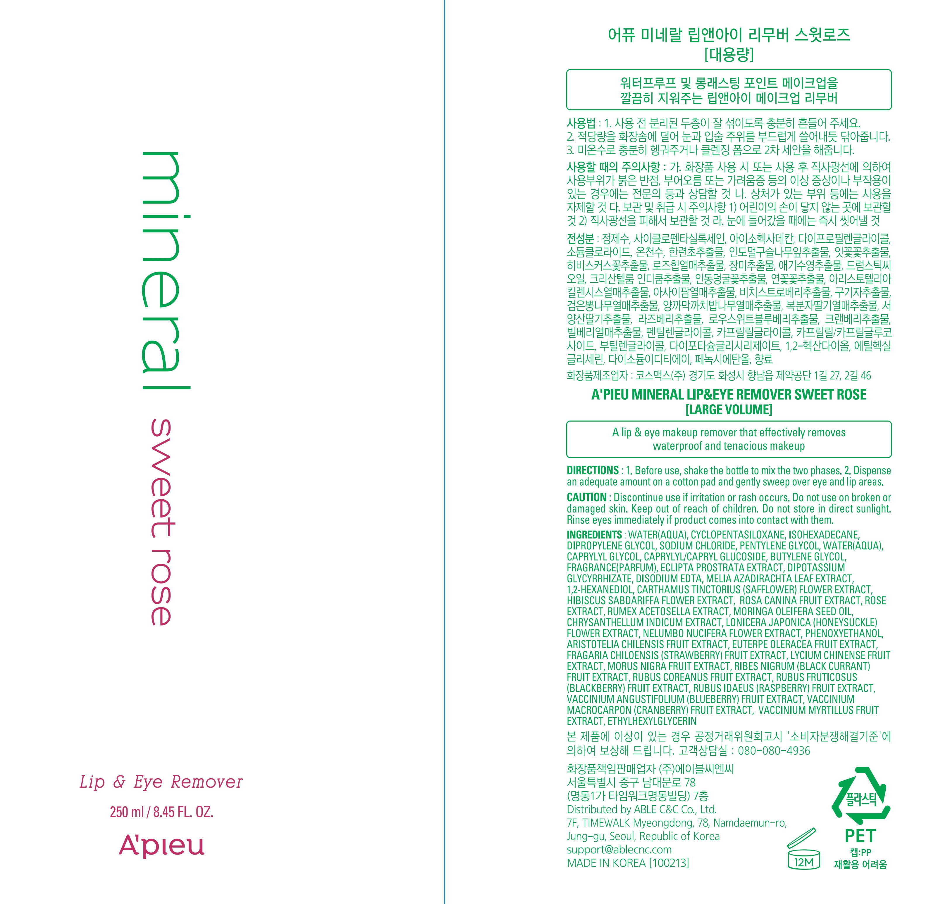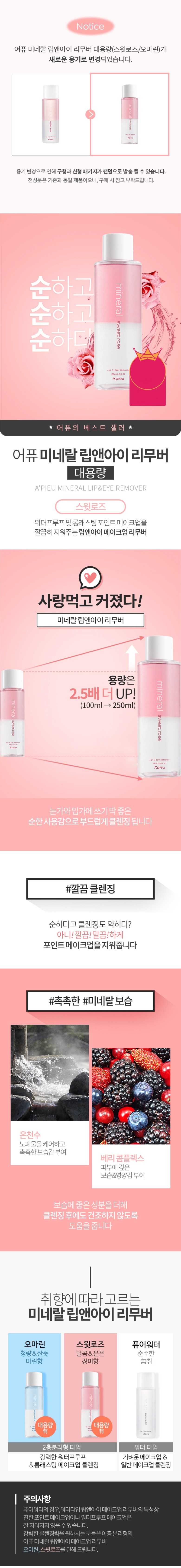 Минеральное средство для снятия макияжа с губ и глаз A'Pieu / Сладкая роза, 100 мл, 1 шт.