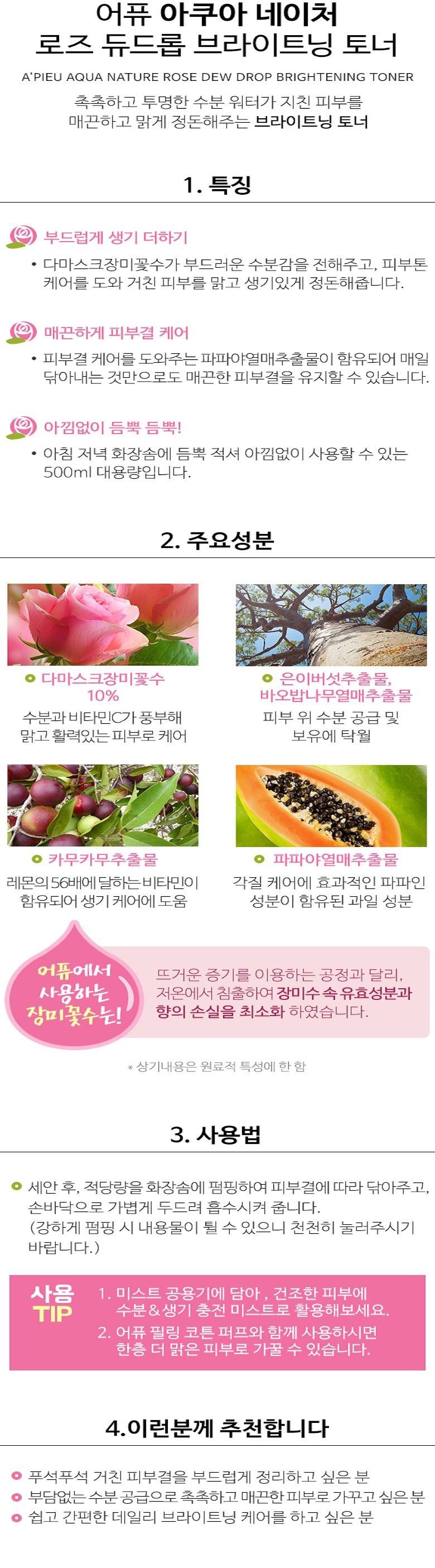 Осветляющий тоник для лица A'Pieu Aqua Nature Rose Dewdrop, 500 мл, 1 шт.