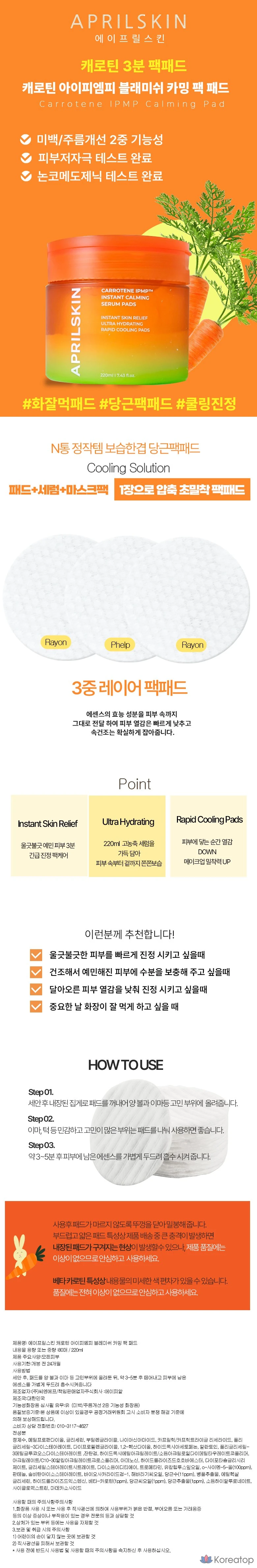 Подушечки для лица April Skin Carotene 3-Minute Pack Pads IPM Blemish Calming Pack Pads, 80 листов, 1 упаковка, 80 листов