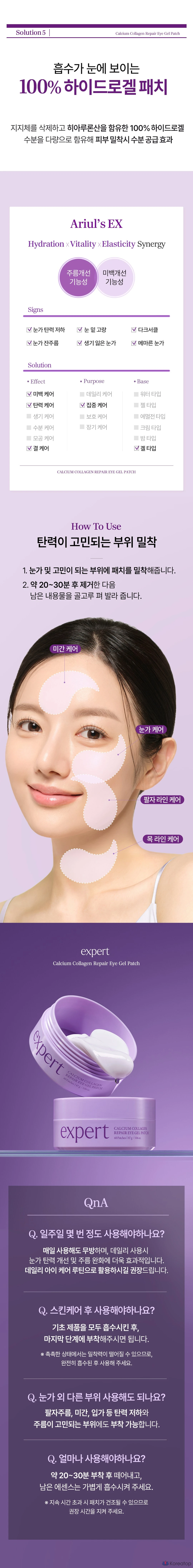 Гелевые патчи для глаз Ariel Expert с кальцием и коллагеном для восстановления кожи вокруг глаз, 1 шт., 60 штук.