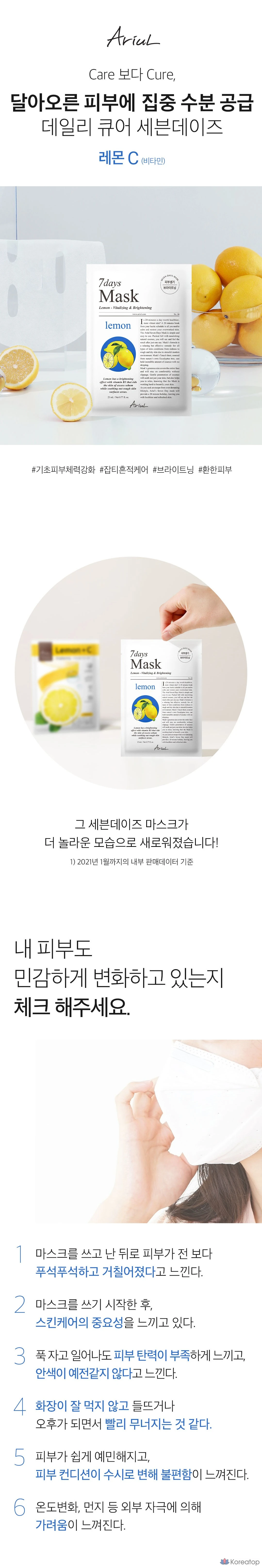 Маска для лица Ariel Seven Days Mask Lemon C, 23 мл, 1 упаковка, 1 шт.