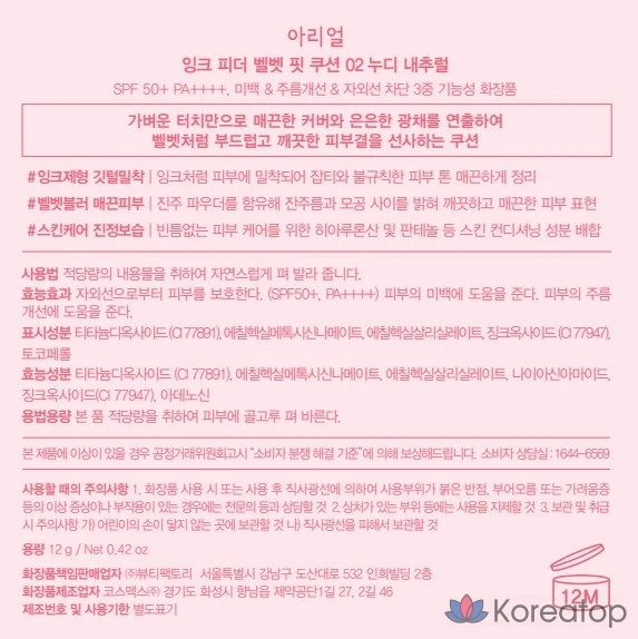Тональный крем-кушон Ariel Ink Feeder Velvet Fit SPF 50+ PA++++ 12 г, № 3, кремово-бежевый, 1 шт.