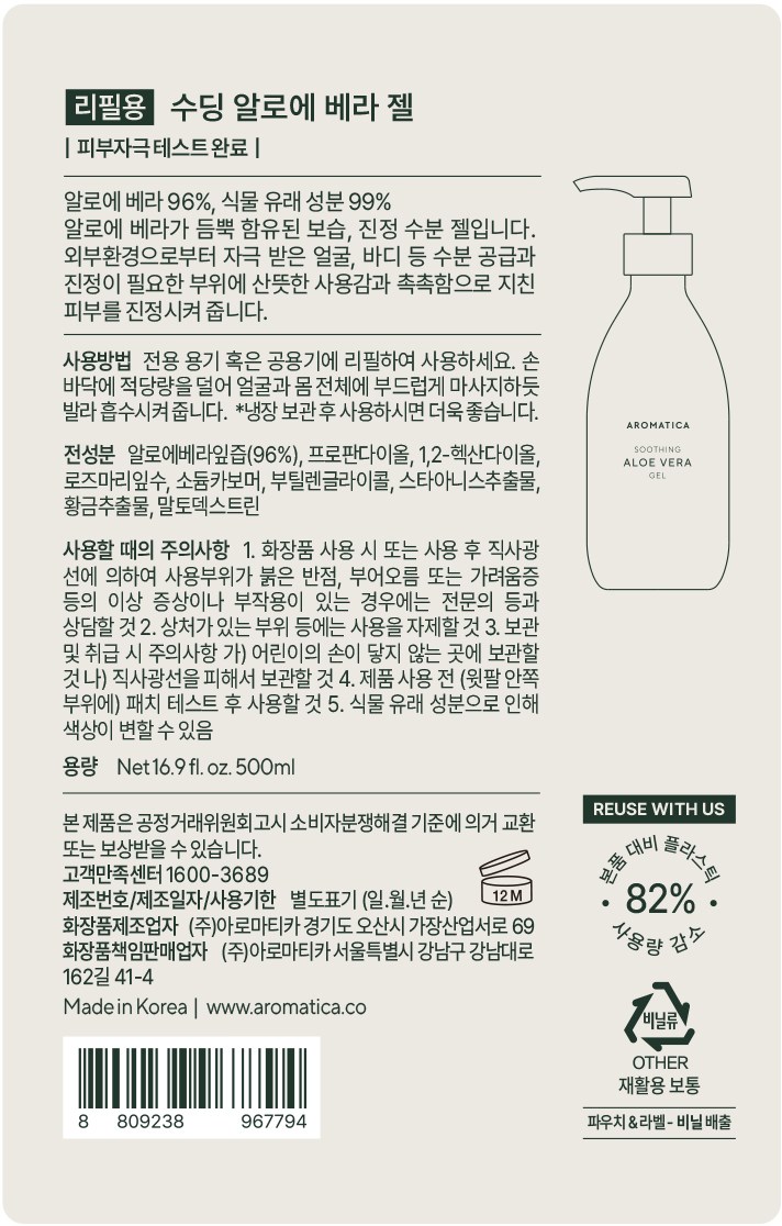 Aromatica успокаивающий гель-наполнитель с алоэ вера, 500 мл, 1 шт.