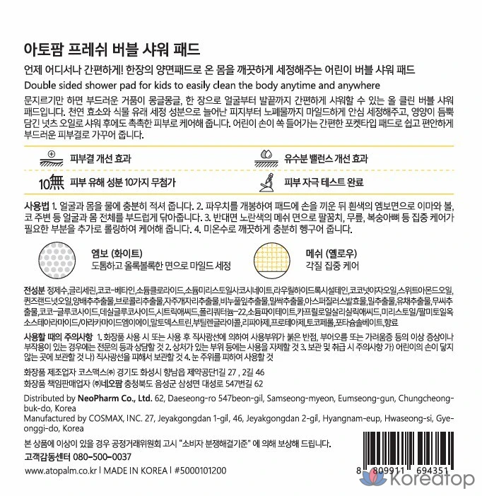Детские подушечки для душа Atopalm Fresh Bubble, 5 шт., 52 г, 1 шт.