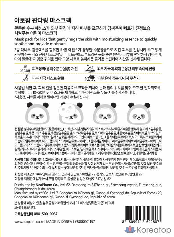 Набор масок-колец Atopalm Panda Ring Mask, 15 г, 5 штук, 1 упаковка.