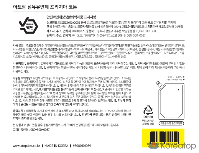 Сменный блок кондиционера для белья Atopalm с ароматом фрезии и хлопка, 1 л, 1 шт.