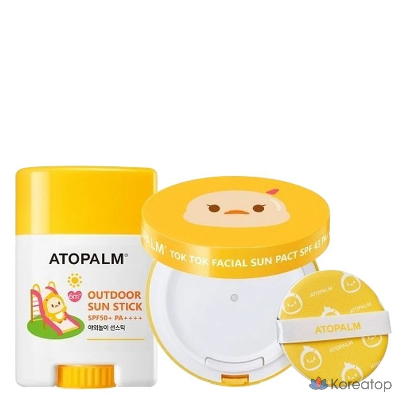 Солнцезащитный тюбик для лица Atopalm Tok Tok для младенцев SPF43 PA+++ 15 г + солнцезащитный стик SPF50+ PA++++ 21 г, 1 комплект