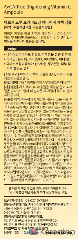 AVCA True Whitening Vitamin C Ampoule 100 мл — осветляющая ампула с витамином C для сияния кожи