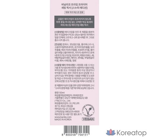 Фиксирующая основа под макияж Vanillaco Snoopy Edition Prime Primer Setting Fixer, 50 мл, 1 шт.