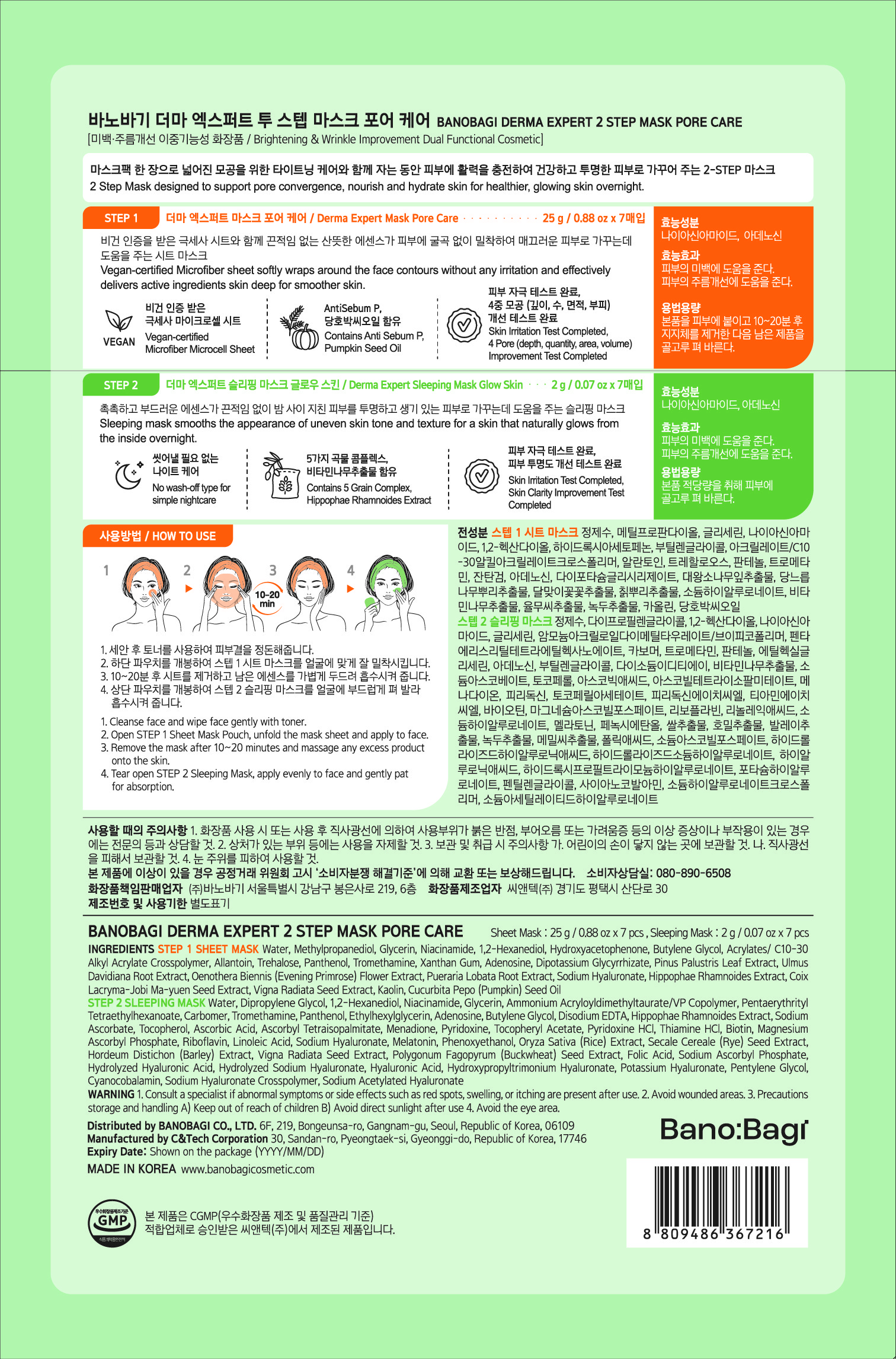 Маска для лица Banobagi Derma Expert Two-Step Mask Pore Care, 7 листов, 3 упаковки.