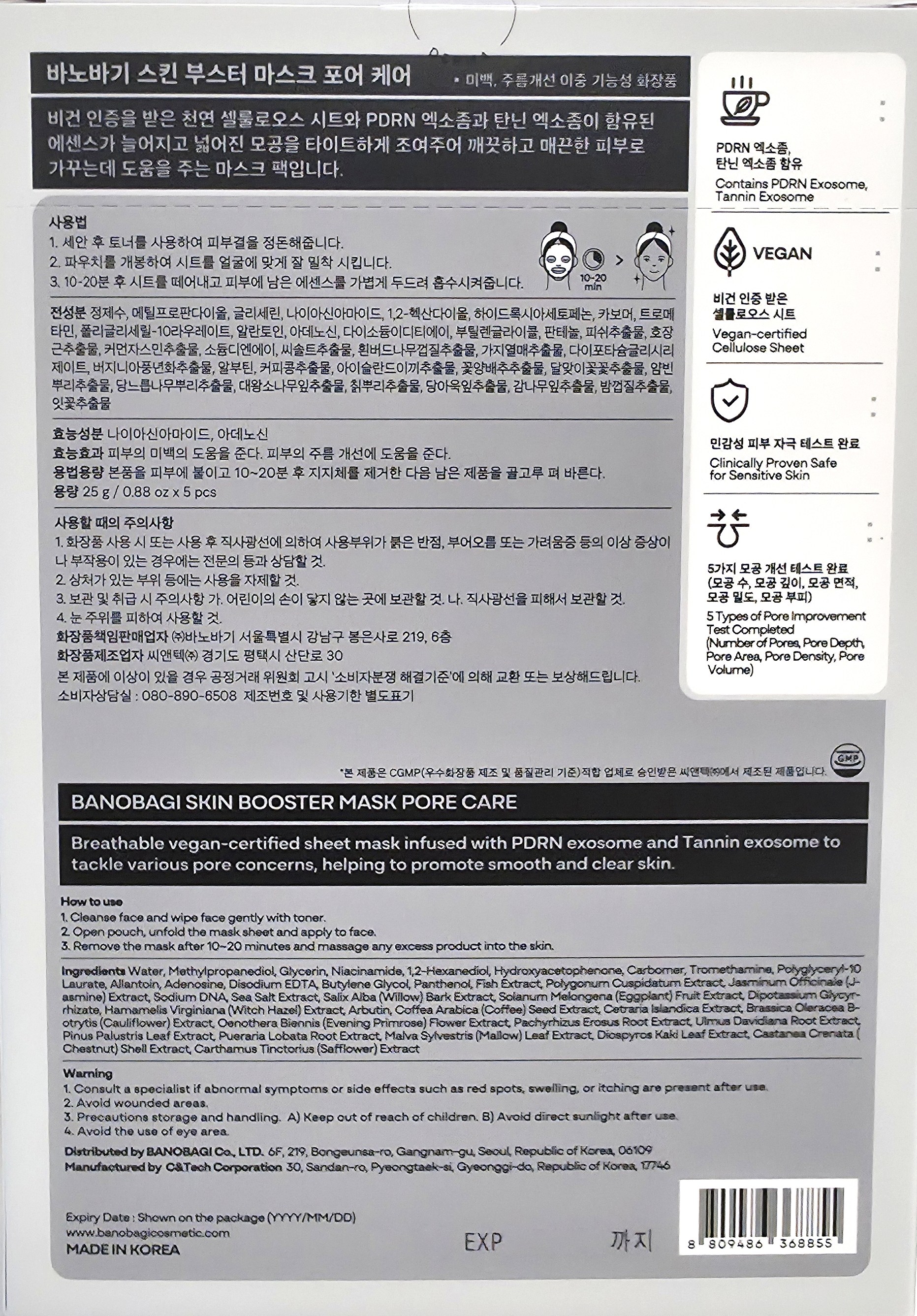 Набор из 5 масок для уход за порами Banobagi Skin Booster, 1 упаковка.