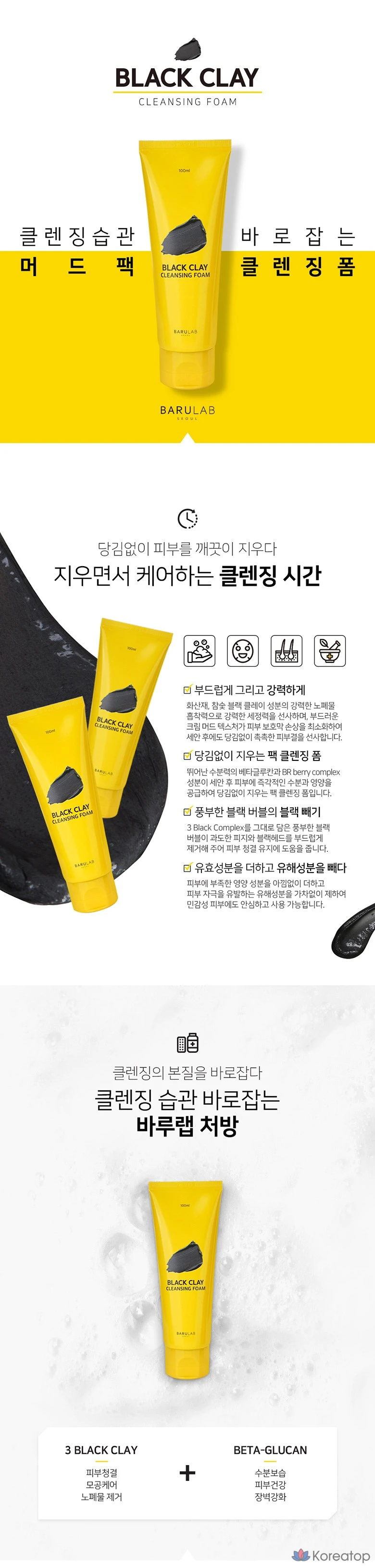 Очищающая пенка для лица Barulab с черной глиной, 100 мл, 1 шт.