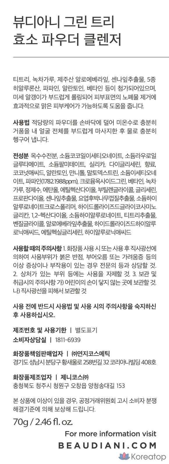 Очищающая пудра Beaudiani Green Tree Enzyme Powder Cleanser — это инновационное средство для ухода за кожей, которое сочетает в себе силу энзимов и натуральных компонентов. Пудра мягко удаляет загрязнения и излишки кожного жира, не пересушивая кожу. Благодаря своей легкой текстуре, она подходит для ежедневного использования и обеспечивает свежесть и чистоту. Формат пудры позволяет легко дозировать средство, превращая его в нежную пену при контакте с водой. 🌿
