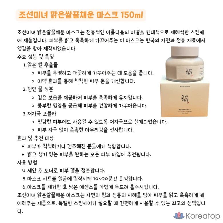 Очищающая рисово-медовая маска для лица Joseon Beauty, 1 упаковка, 1 штука
