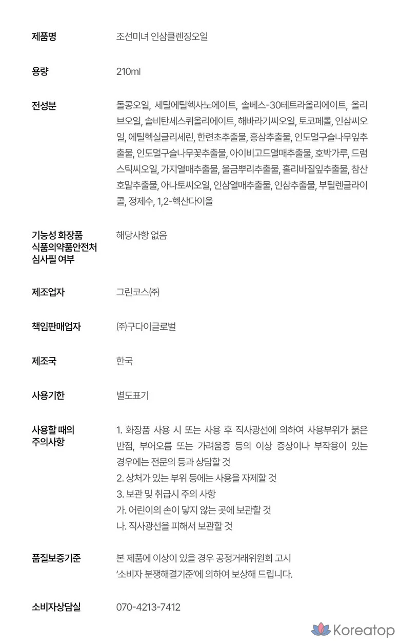 Очищающее масло с женьшенем Joseon Beauty, 1 шт., 210 мл