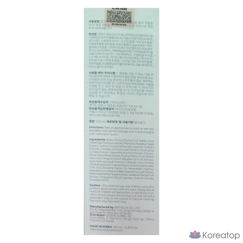 Очищающее средство Joseon Beauty Fresh Green Plum Cleanser, 100 мл, 1 шт.