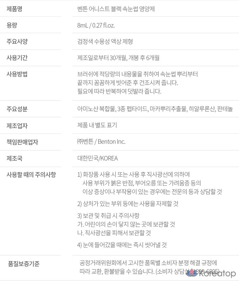 Питательная сыворотка для ресниц Benton «Черные ресницы», 1 шт., 8 мл