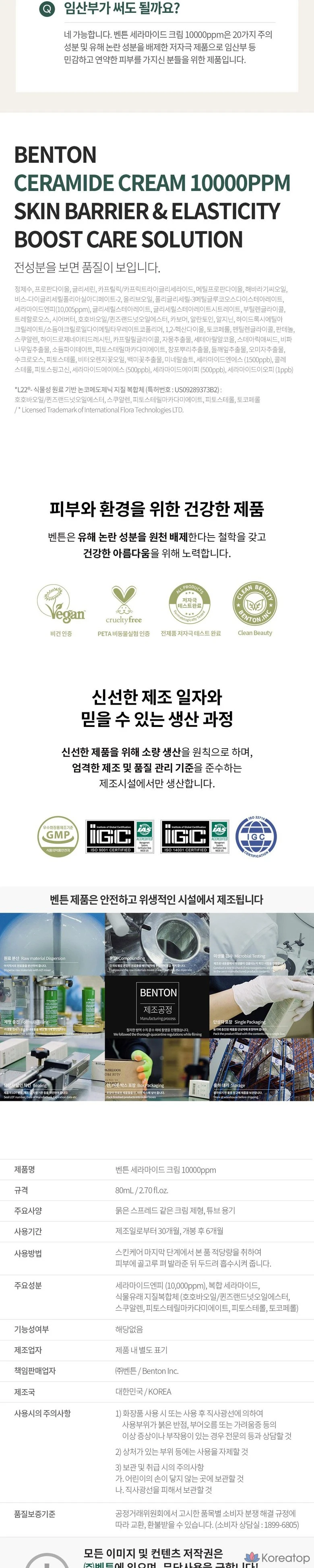 Benton Успокаивающий керамидный крем для кожи, 1 шт., 80 мл