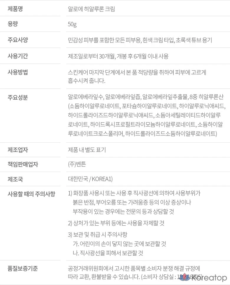 Крем Benton с алоэ и гиалуроновой кислотой, 50 г, 1 шт.