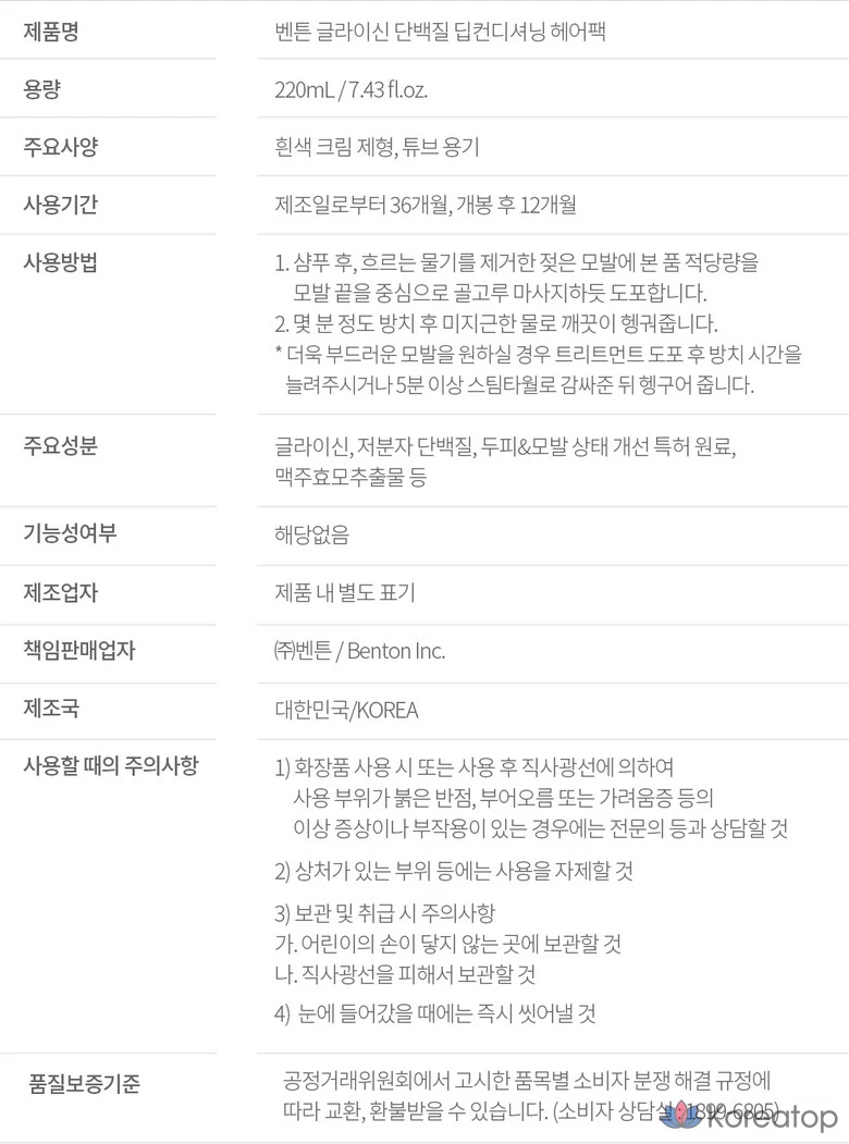 Маска для глубокого кондиционирования волос Benton Glycine Protein, 1 шт., 220 мл