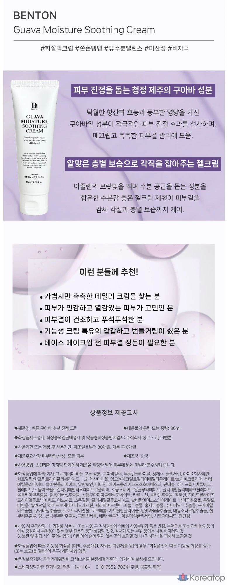 Успокаивающий увлажняющий крем Benton Guava, 80 мл, 1 шт.