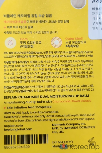 Увлажняющий бальзам для губ Beplain с ромашкой, 3,6 г, 1 шт.