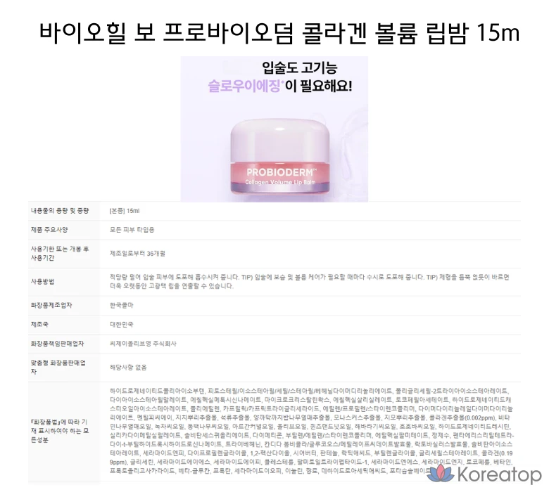 Бальзам для губ Biohealbo Probioderm Collagen Volume, 15 мл, 1 шт.