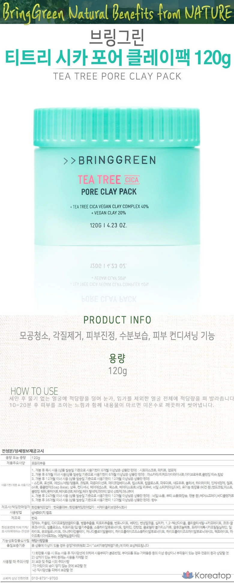 Глиняная маска для лица Bring Green Tea Tree Cica Pore Clay Pack, 120 г, 1 упаковка