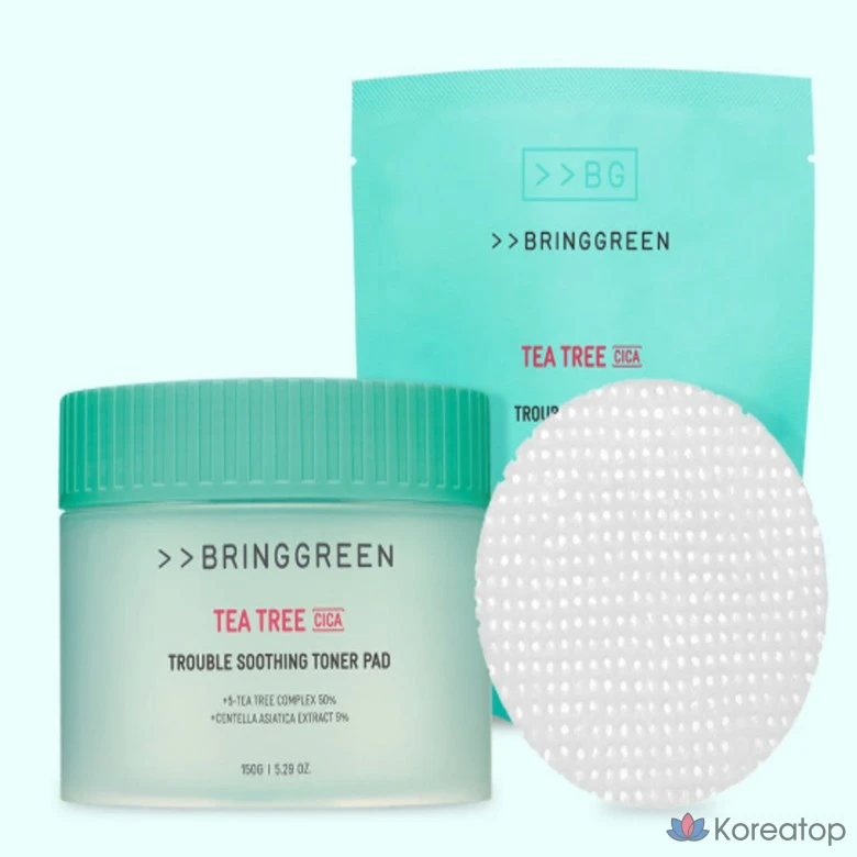 Тоник-подушечки Bring Green Tea Tree Cica Trouble, 90 листов, сменный блок 90 листов, 1 упаковка