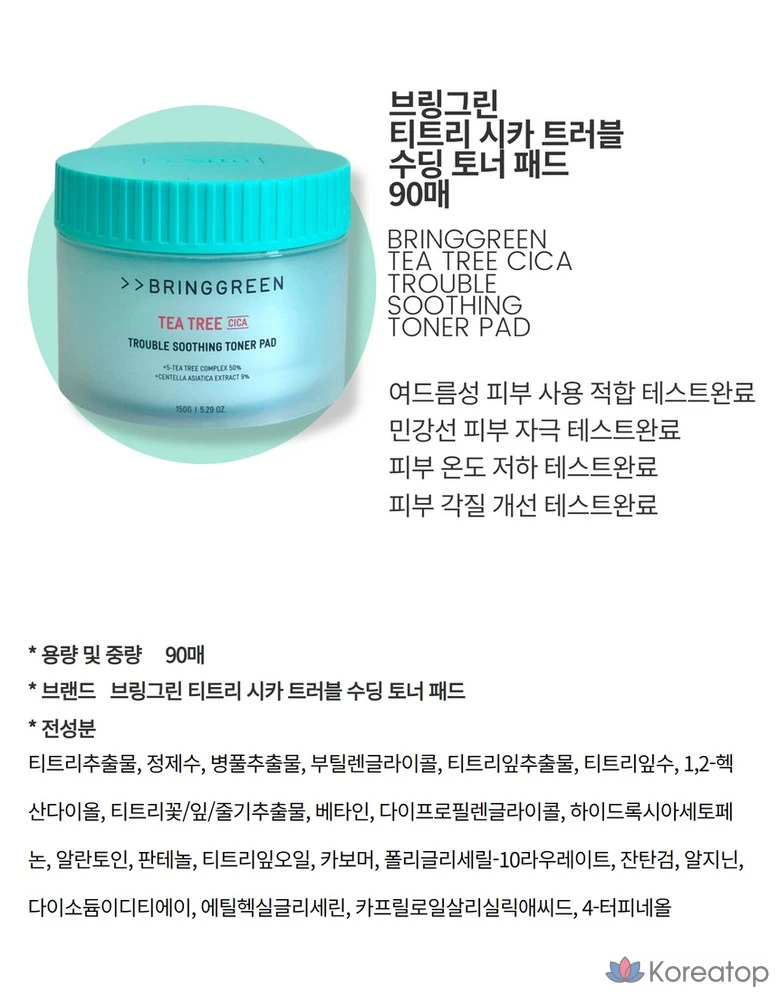 Успокаивающий тоник-крем в подушечках с маслом чайного дерева и центеллой азиатской для кожи с акне, жирной и чувствительной, BRINGGREEN, 1 упаковка, 3 упаковки.