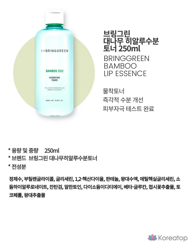 Увлажняющий тоник Bring Green Bamboo с гиалуроновой кислотой, 250 мл, 1 шт.