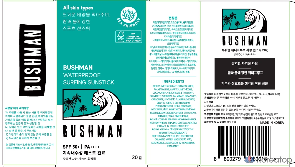 Водостойкий солнцезащитный стик Bushman Surfing Sun Stick SPF50+ PA++++
