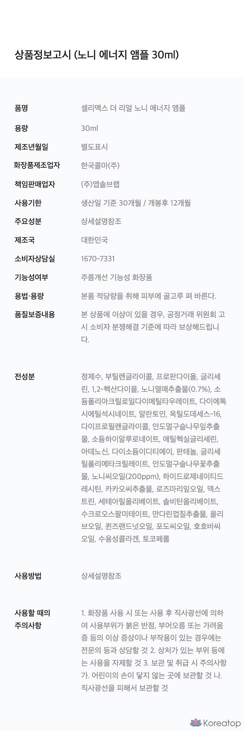 Cellimax The Real Noni Energy Ampoule, 30 мл, 1 шт.