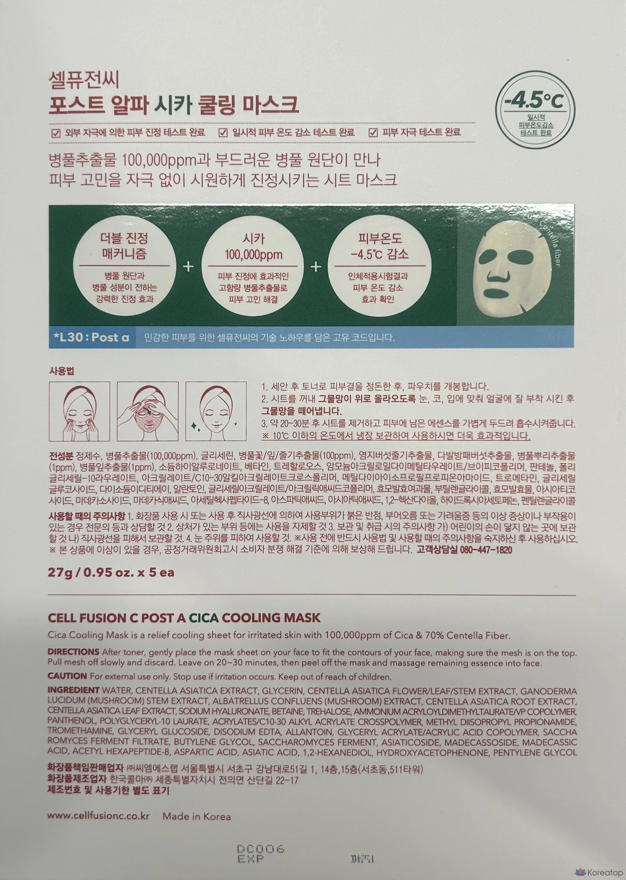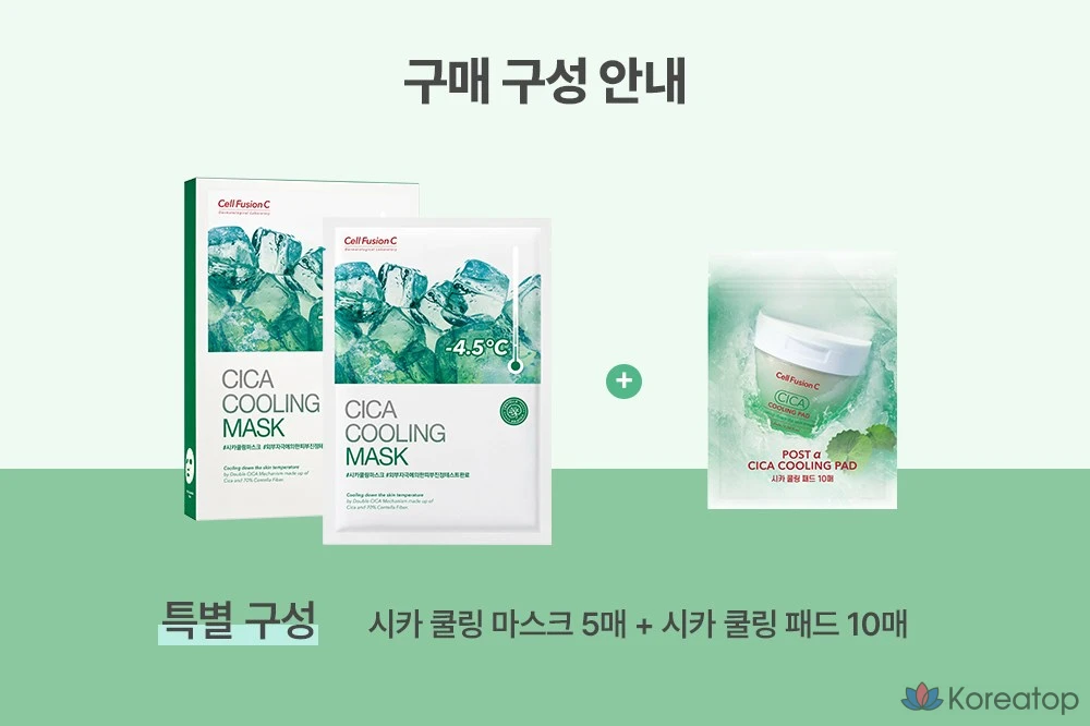 Охлаждающая маска Cellfusion C Cica (5 шт.) + охлаждающая подушечка Cica (10 шт.), 1 комплект.
