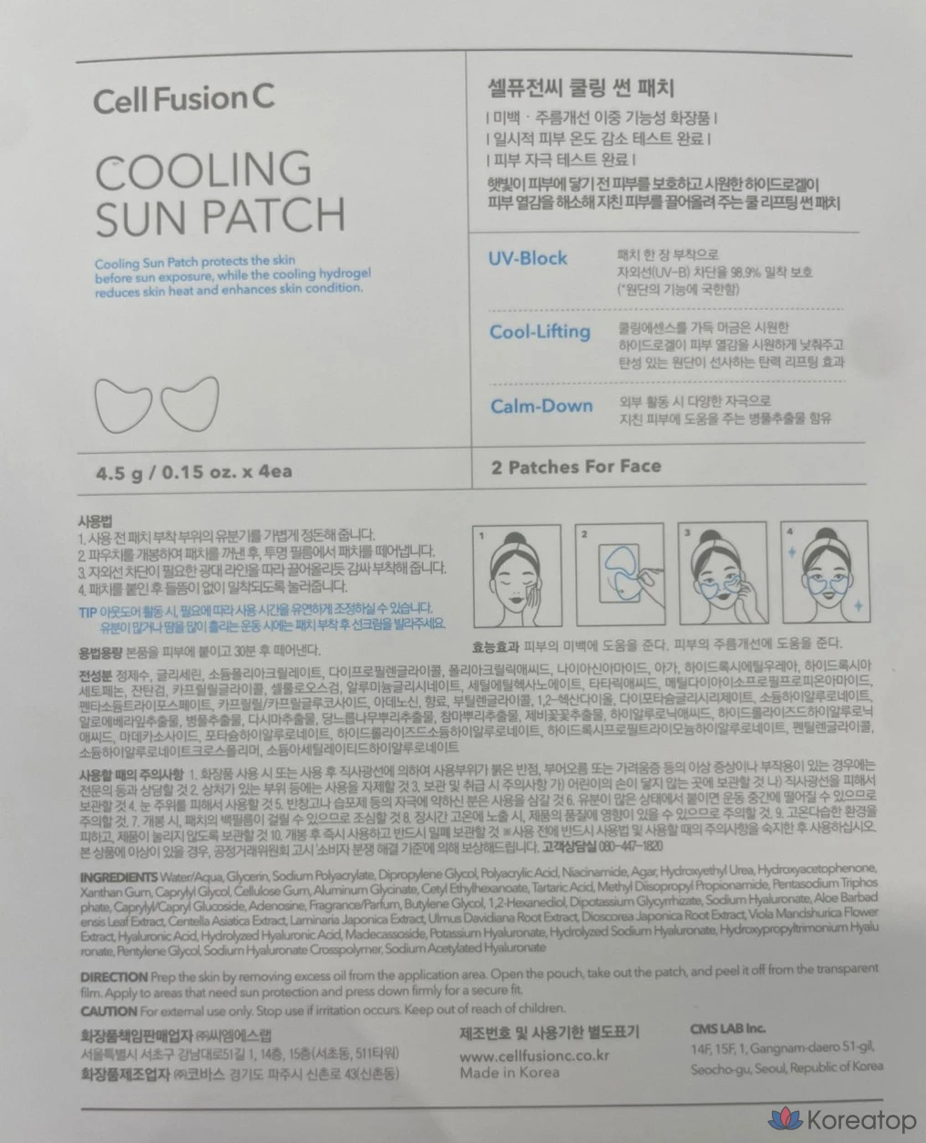 Солнцезащитные охлаждающие пластыри Cellfusion C, 4 шт., 4,5 г, 1 шт.