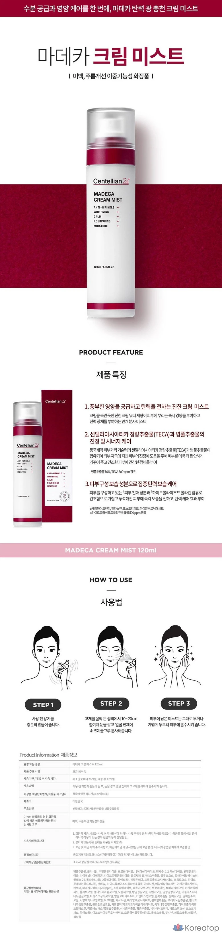 Крем-спрей Centellian24 Madeca 120 мл, придающий эластичность, легкость и осветляющий эффект, 1 шт.