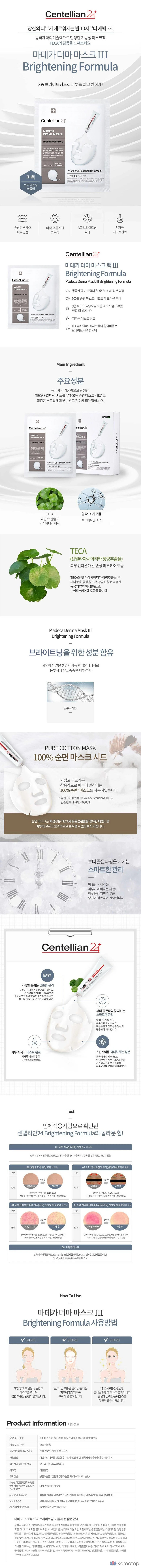 Маска для лица Centellian24 Derma Mask 3 с осветляющей формулой, 100% хлопок, 1 упаковка (10 штук)