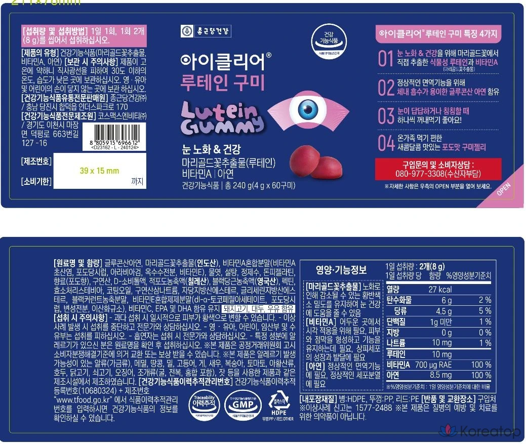 Лютеиновые жевательные таблетки Chong Kun Dang Health iClear, 240 г
