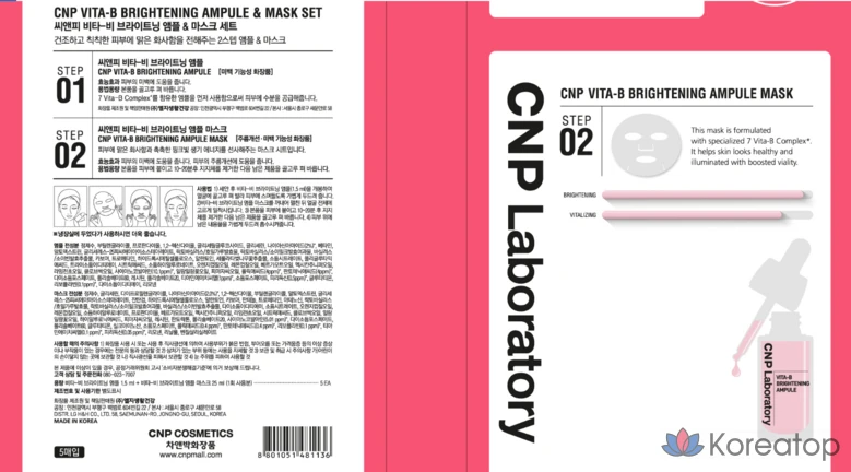 Осветляющая ампульная маска CNP Vita-B, 1 лист, 1 упаковка, 1 шт.