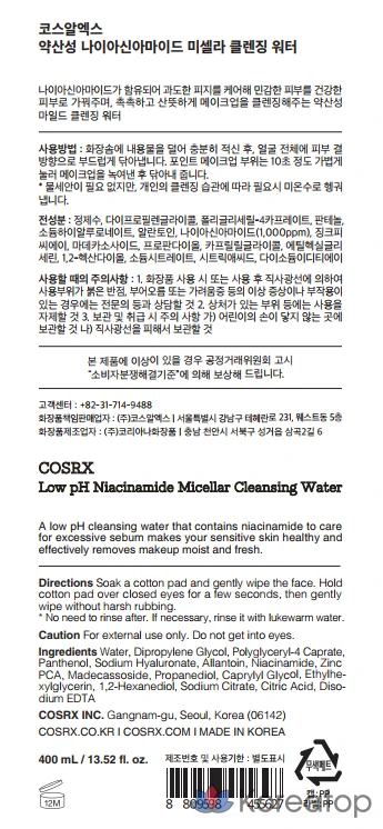 Мицеллярная очищающая вода COSRX с мягкой кислотностью и ниацинамидом, 400 мл, 1 шт.