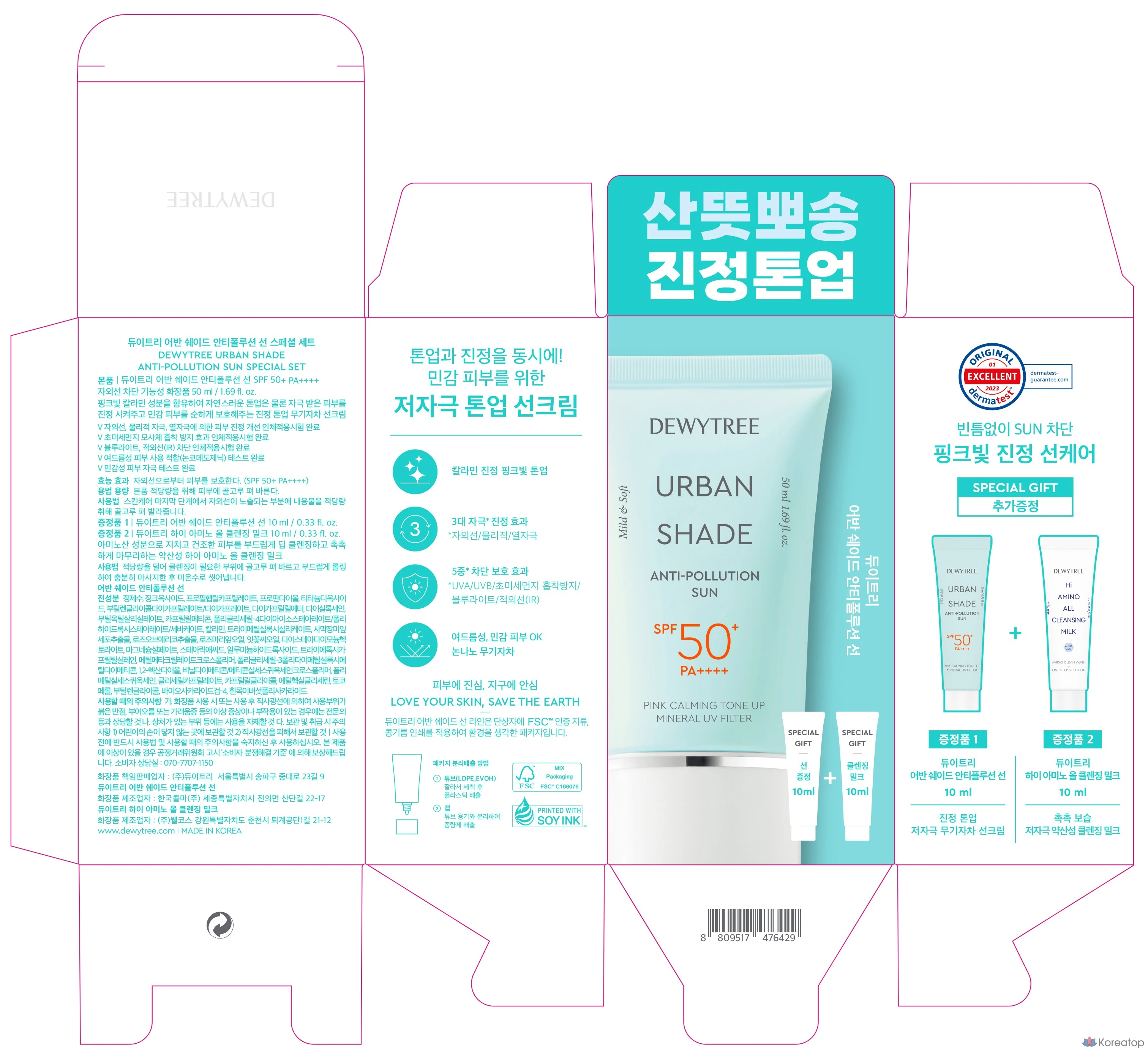 Набор Dewytree Urban Shade Anti-Pollution Sunscreen SPF50+ PA++++ 50 мл + 10 мл + Hi-Amino All Cleansing Milk 10 мл, 1 шт.