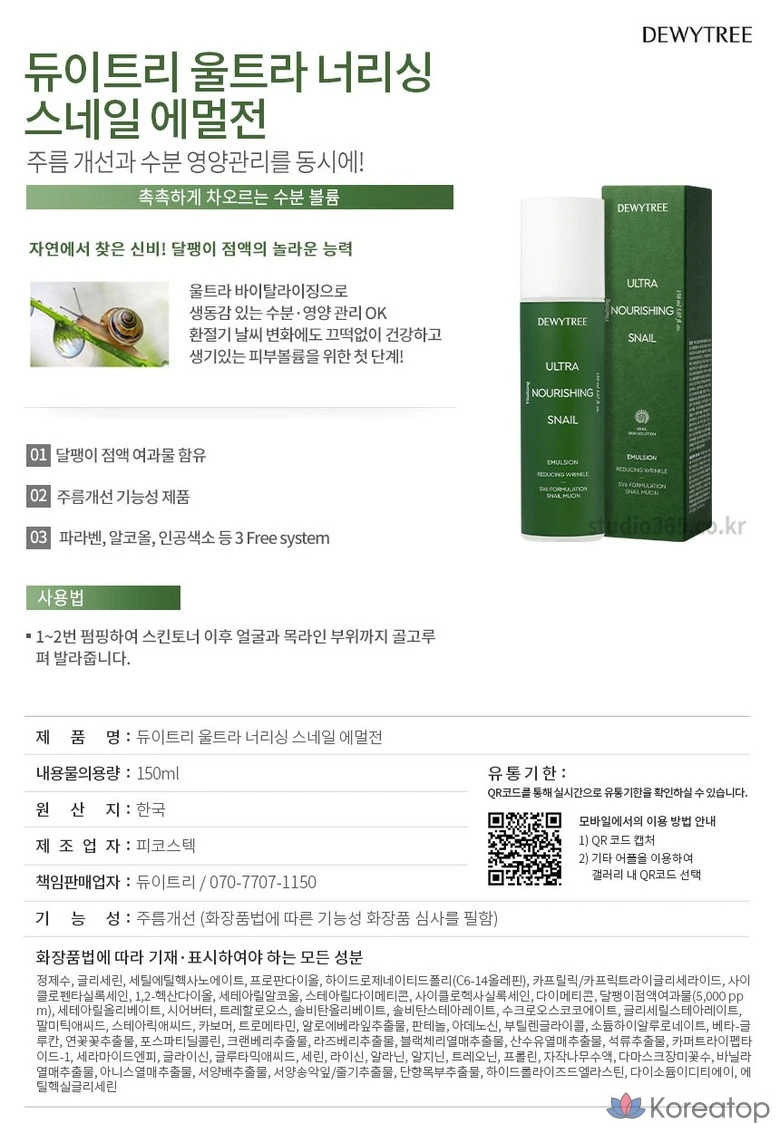 Ультрапитательная эмульсия с экстрактом слизи улитки Dewytree, 150 мл, для повышения эластичности кожи, питательный увлажняющий лосьон с экстрактом слизи улитки, 1 шт.
