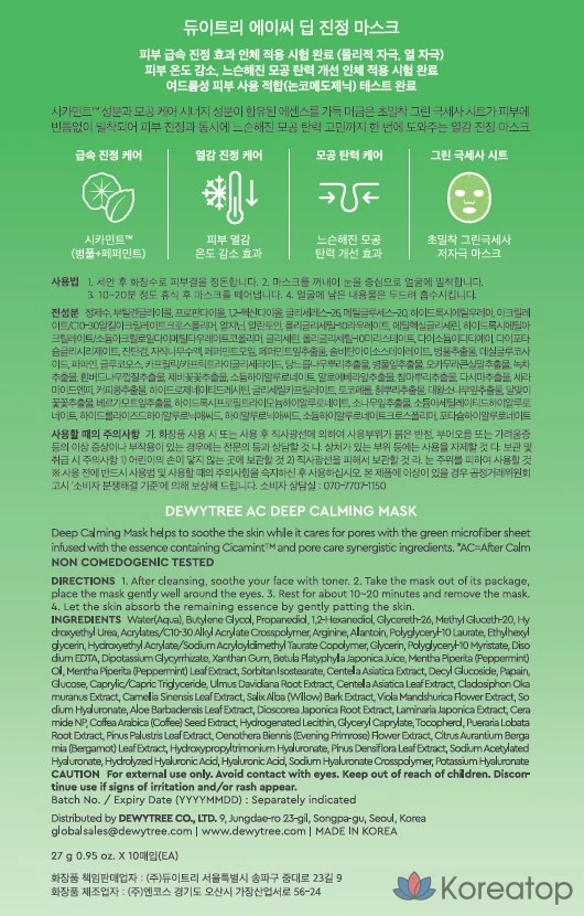 Успокаивающая маска для лица Dewytree AC Deep Soothing Mask, 10 шт.