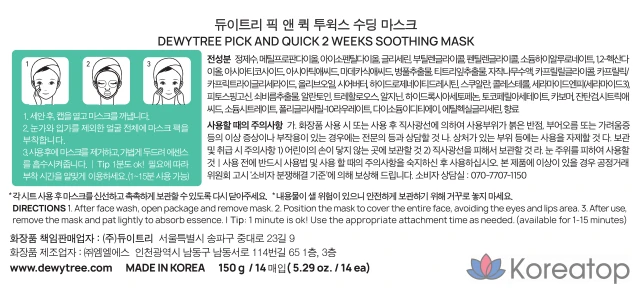 Успокаивающая маска для лица Dewytree Pick & Quick Two Weeks, 1 упаковка, 14 штук.