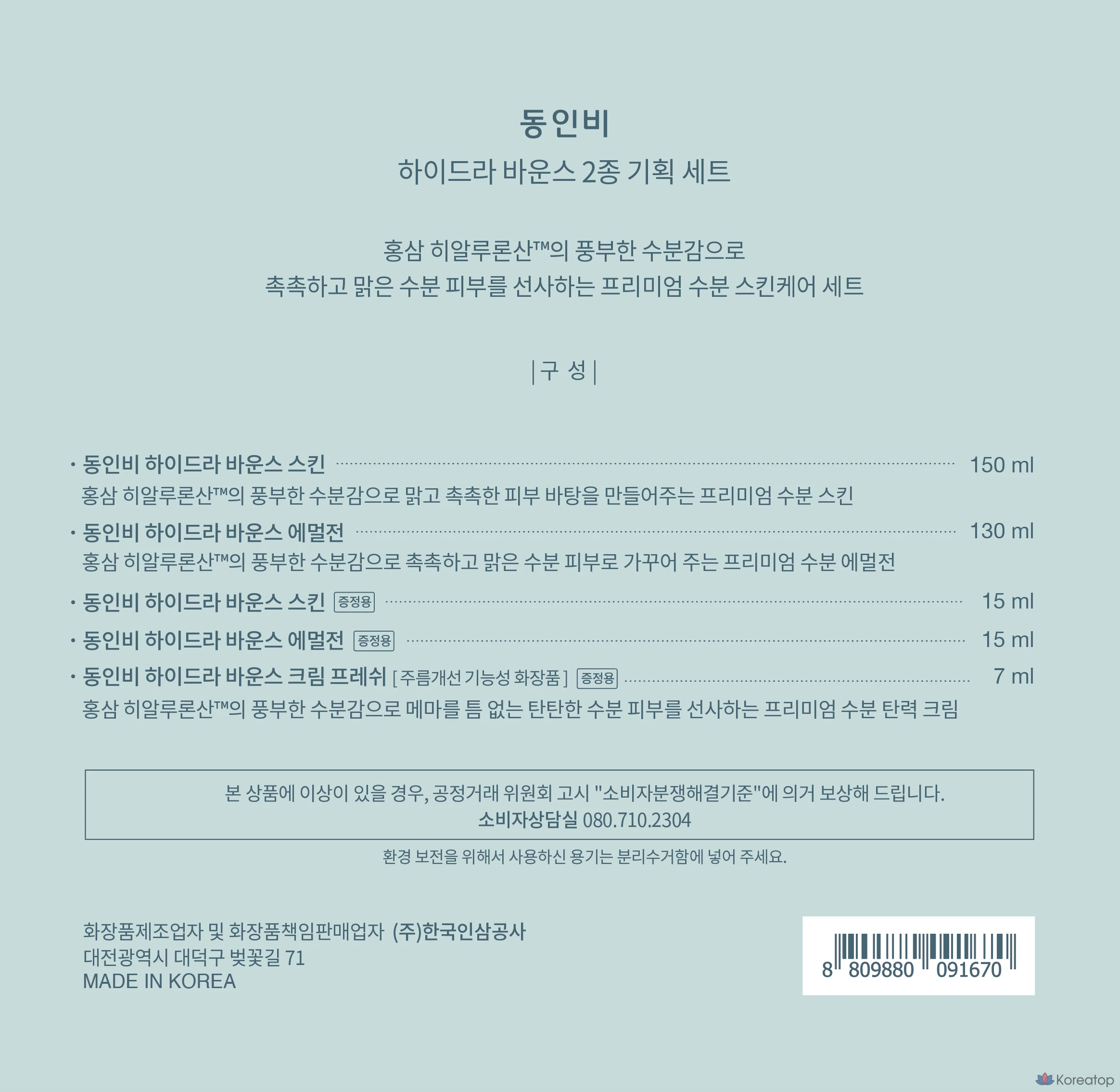 Набор Donginbi Hydra Bounce Skin + Emulsion из 2 предметов, 1 комплект