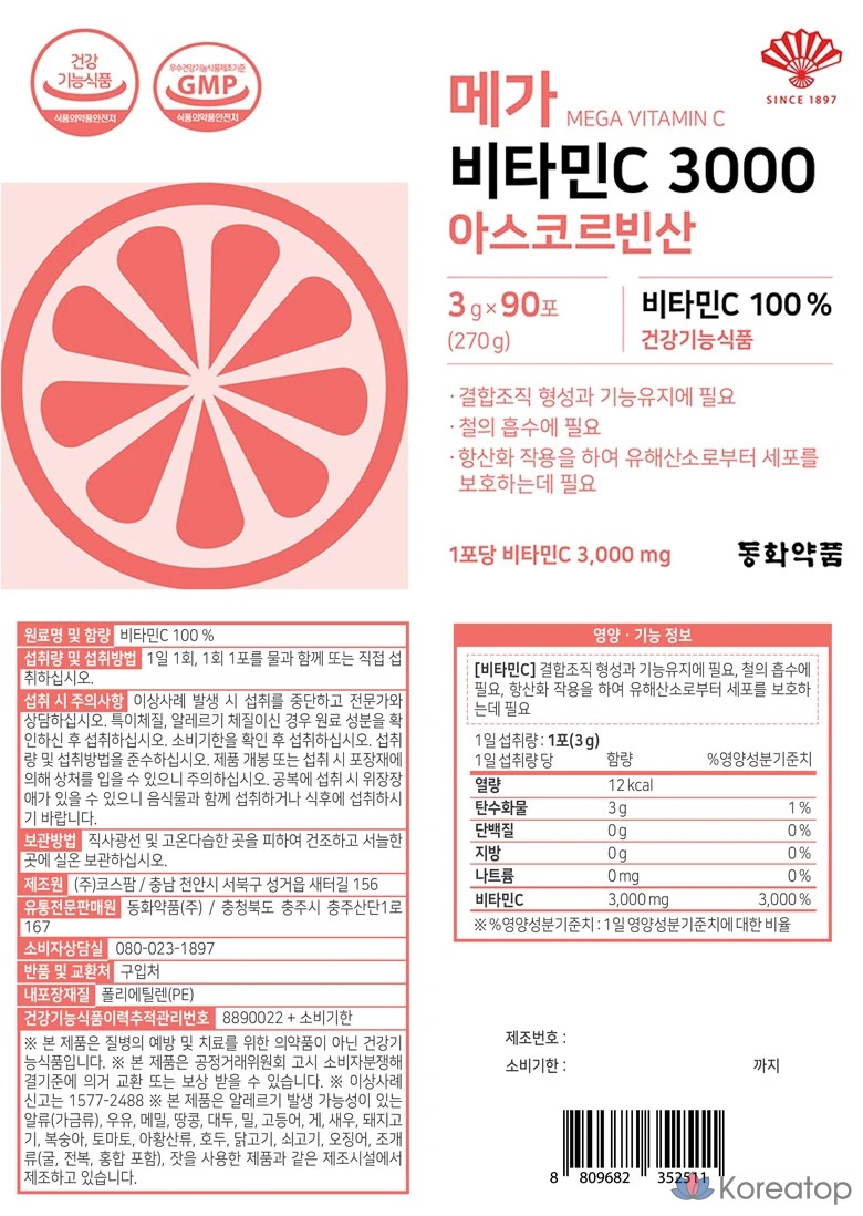 Аскорбиновая кислота Dongwha Pharmaceutical Mega Vitamin C 3000, 270 г
