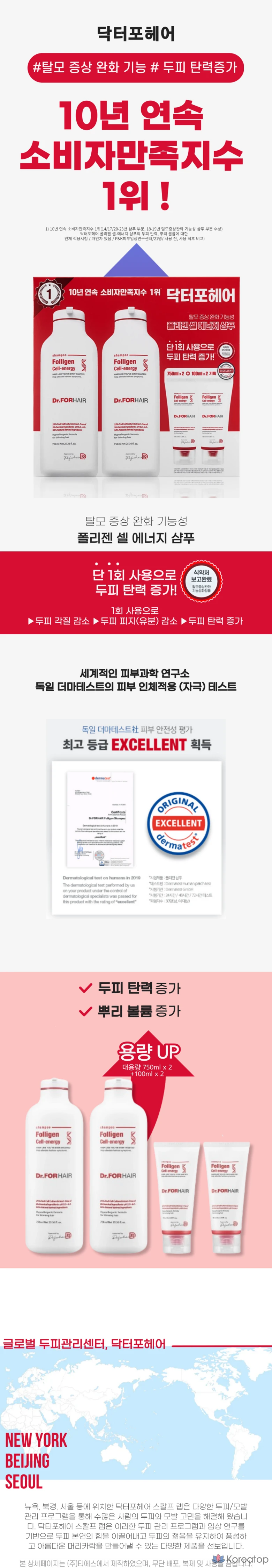 Dr. For Hair Foligen Cell Energy Shampoo, 2 флакона по 750 мл, 2 флакона по 100 мл, 1 набор